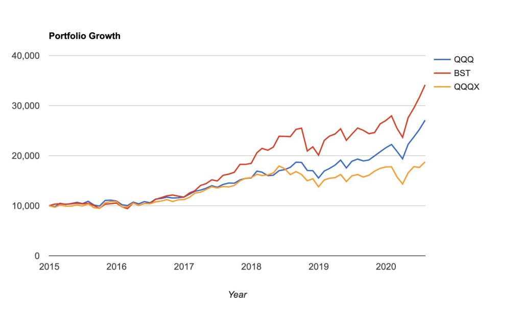 Bst 一年有4.9趴的利息收入, 另外績效又比QQQ優秀